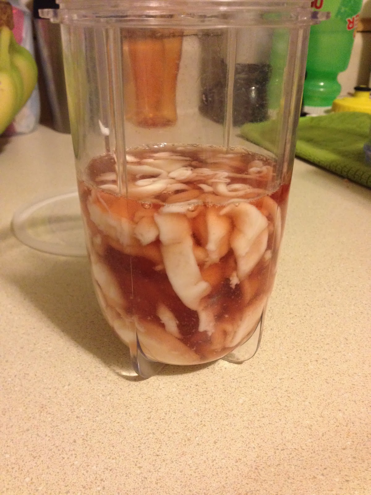 Yogurt and cranberry juice to start to shake. Looks gross, but a great combo.